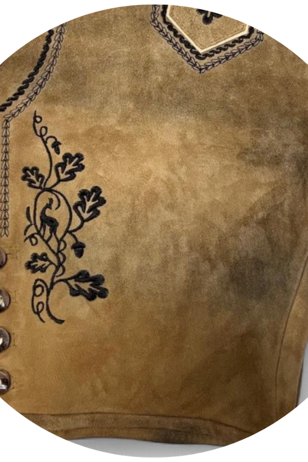 As Bermudas de couro com cinto ou "Lederhosen" são a escolha perfeita para homens que prezam pelo estilo e buscam combinar tradição e conforto. Este modelo impressiona com bordados sutis na braguilha e nas pernas, enfatizando um visual clássico e tradicional.