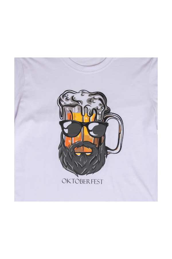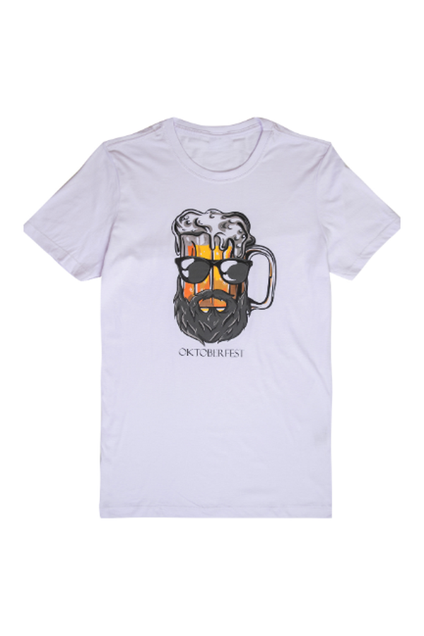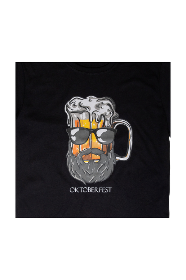 Estampa: Design exclusivo com caneca de chope e barba, combinando tradição e estilo contemporâneo.