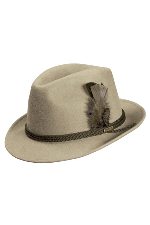 Chapéu de feltro extra macio e maleável, ideal para uso em Oktoberfest, Kerbfest, bailes de chopp entre outros. Possui um cordão franciscano com detalhes com penas na lateral. Sua aba tem aproximadamente 4,5cm e sua copa 10.